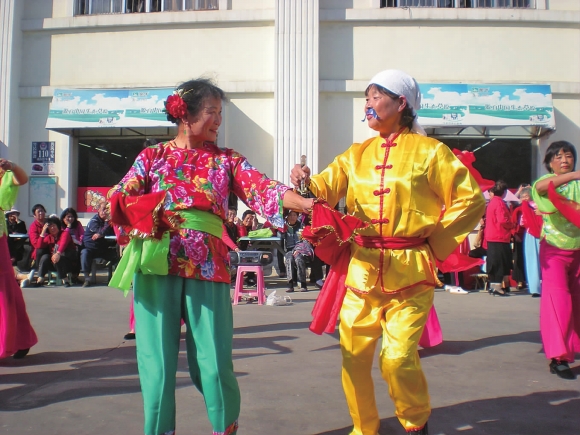 13日下午,海城、西门外、同德、石河四个社区的老年人在社区内载歌载舞,左邻右舍聚在一起,你唱我跳迎重阳。74岁梁俊然老人告诉记者,参加表演都是年近七旬的老人,“图的就是热闹、开心,照这样活到百岁不是梦”。