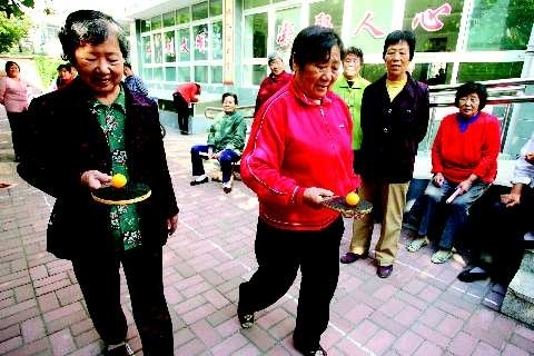 13日,在虞中社区广场上,—场别开生面的“重阳节”趣味运动会拉开了序幕,托球跑、夹玻璃球、投球……