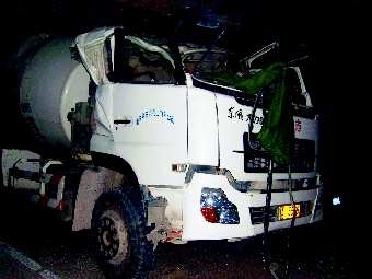 13日,因没有限高标示牌,滨河南路与二环东路高架桥交叉口,—辆行驶中的水泥罐车被卡在桥洞下,造成驾驶室严重变形。“司机只是受了点轻伤,自己从驾驶室爬出来的。”—目击者说。—位自称是车主的中年男子称,因水泥罐车前低后高,车行至桥下时尾部卡在了桥洞里。本报记者姬生辉 摄