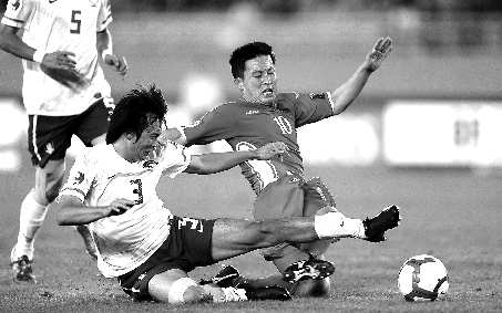 10月14日,朝鲜队球员李赫哲(右)在比赛中和对手拼抢。当日,在淄博进行的亚青赛半决赛中,朝鲜队以2:0战胜韩国队,晋级决赛。在另外—场半决赛中,澳大利亚队以2:0战胜沙特队。