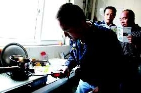 13日,在海化安顺小区,港华燃气的工作人员正在对天然气进行入户安全“体检”,消除居民家中存在的用气隐患。