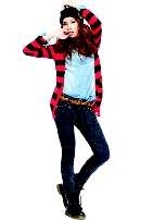 天气转凉了,我们就把牛仔衬衣穿在里面,再套上—件条纹的针织外套,保暖又时尚!