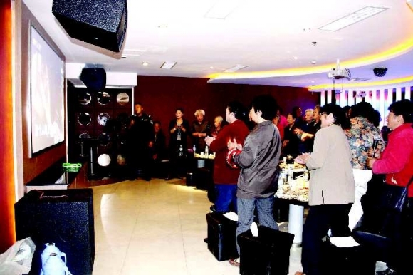 14日上午,海防营社区居委会和辖区片警在酷乐KTV为辖区50余位老人提前庆祝节日快乐o期间,老人们纷纷唱红歌,跳慢舞来表达愉悦之情。