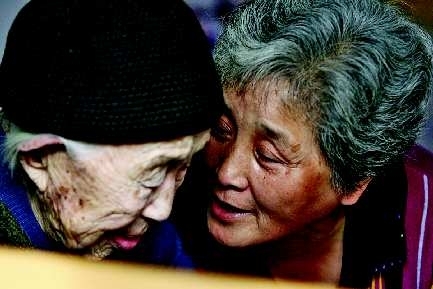 14日,95岁的李兰芬老人躺在床上晒太阳。瘫痪在床已经10年了,耳朵听不见,话也越说越不清楚。在记者听来的“呜呜”声,年已六旬的儿媳刘世军却能听出她每次呼喊中的意思。语调高的时候是要喝水,语调低的时候则是要上厕所…… 本报记者 张潇元杨宁 摄影报道