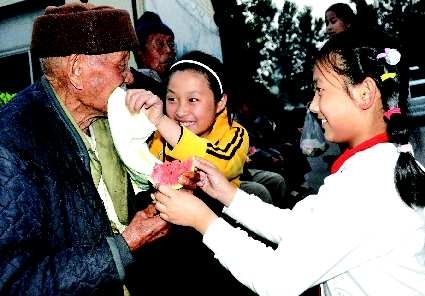10月13日,临沂第七实验小学的“爱心天使”走进罗庄区盛庄街道幸福院,为老人们送去了欢乐和祝福。在重阳节来临之际,罗庄区各学校组织开展了“尊老敬老迎重阳”德育实践活动,走进敬老院、社区,为老人们送去精心准备的礼物。