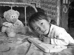 刘松美说,没钱给女儿治病,她只能给可馨买了助听器戴上,鞭炮那么大的声音只能隐约听得到,所以她每天很大声地和女儿说话,让她看着自己的嘴形学习,现在可馨能勉强发出“妈妈”的声音。本报记者赵郁