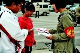 在洪楼广场,来自江苏的刘先生看到“百姓城管”后,自觉加入其中,帮着发放宣传材料。刘先生表示,“百姓城管”这个活动非常好,也很有意义。