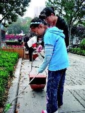 本报10月17日讯 17日,有不少小市民加入了“百姓义务城管”队伍,他们清扫落叶、捡拾烟头,忙得不亦乐乎,也体会了环卫工人的辛劳,亲身上了一堂社会体验课。