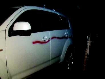 谁想两个小时后,当刘先生准备开车离去时,却发现爱车遭人喷漆“毁容”。一开始,刘先生以为是自己的车挡了别人的道儿,是有人泄愤。可后来,他才发现遭殃的不光是自己,路边的多辆私家车也是如此,车主多是该小区的居民,甚至一辆没挂牌的白色越野车车身被喷了一圈自喷漆,而且还是红绿两种颜色。