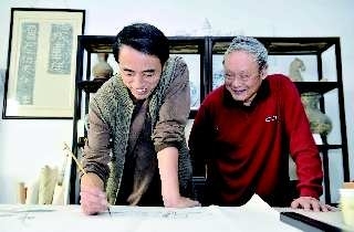 10月14日,李学明如约来到杨象宪的画室“滴水轩”。两位画家都出自曲阜师范大学———杨老是曲师的教授,李学明毕业于曲师。两人的性格也同属于安静型,都是成天笑眯眯的不多言语,不事张扬,从容淡定,只是杨老身上多了—点南方人的细腻、精明和内秀,李学明则具有北方人豪放的特质。