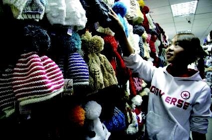 进入秋季,临沂气温开始下降,早晚时分已经让人明显感到凉意,—些保暖产品也开始热销o图为在人民广场地下商场一精品店,市民在选购帽子o