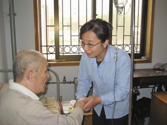 一天凌晨两点半,邢玲玉接到电话,老年公寓有个奶奶白天走路不小心摔倒了,胳膊肿了,疼得厉害。考虑到老人骨质疏松,易引发骨折,邢玲玉马上穿上衣服,赶到公寓去查看,在确定没有骨折后,拿冰给老人敷患处,减轻疼痛,避免皮下继续出血,防止继续肿胀,一切安顿好后,老人安稳地睡着了。