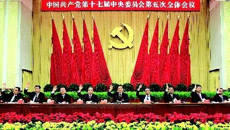 十七届五中全会10月15日—18日在北京举行o这是胡锦涛、吴邦国、温家宝、贾庆林、李长春、习近平、李克强、贺国强、周永康在主席台上o新华社发A03、A04重点