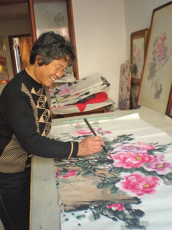 同时,高阿姨的勤奋坚持是她成为“牡丹仙子”的最主要原因。为了学画牡丹,她多次跑到洛阳,亲自观察牡丹的花形、花色、枝干以及生长环境。怀揣着对牡丹的钟爱,高阿姨把牡丹放到了骨子里。绘画、揣摩、分析、否定、改进……在书房里一呆就是一上午,直到中午吃饭才休息一下。“画画的过程中不感觉累,进去了就感觉不到累了。”当问及是否劳累时,高阿姨如是说。