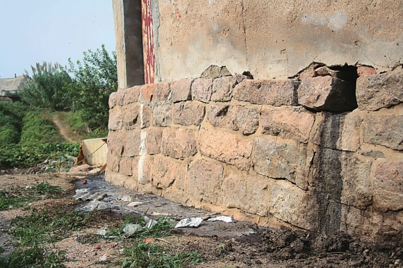 18日上午,在肖先生的带领下,记者来到寨前于家村。离养殖场200米左右就已经闻到了一股刺鼻的臭味,随着距离越来越近气味也越发浓重。在老校舍外记者看到,校舍南面、西面的院墙都经过改建搭起了养猪棚。院墙的底部被凿出了一个个直径约20厘米的方孔,粪便就顺着这些方孔排到村中的小路上。记者打算进养殖场看个究竟,无奈大门紧锁。院内传来的一声高过一声的狗叫声让人却步。
