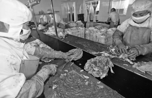 14日,文登市一韩资泡菜加工企业的腌制车间内,工人正忙碌地加工泡菜。受韩