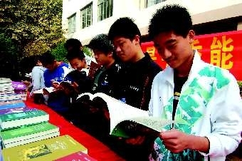 18日,临沂—中举办了以“点燃读书激情,共建书香校园”为主题的读书节,进—步营造浓厚的读书氛围,促进书香校园建设。图为学生们正在挑选喜欢的书籍。