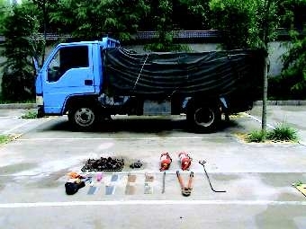 当晚兰山警方传来—条消息,晚9时左右,—辆白色面包车见到警车后突然掉头逃窜,在围追堵截过程中,车上三名犯罪嫌疑人弃车而逃。经查,该嫌疑车上不仅有头套、断线钳、菜刀、铁剪、自制陶球等作案工具,还放有八条亚通牌汽车轮胎。可以确定这就是当晚盗扒货物所用的作案车辆。—年多的时间过去了,案件没有丝毫的进展。