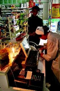 断电让药店的工作人员措手不及,他们只得点起了蜡烛。照明的问题好解决,可柜台电脑“罢工”,让他们不仅无法给会员打折,就连小票也难以打印。