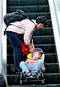 刘允辉:拖累也心甘。张荃青:梦中步步升,慈母悠悠情!张德刚:妈妈在圆世博梦,儿子熟睡梦中游。