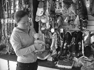 近期天气转冷,宠物商店也推出了款式多样的宠物服装。18日,记者在城区供销路某宠物用品专卖店看到,红色小风衣、黑色小外套、粉色公主裙等宠物秋冬装已摆在了显眼位置,价格从30元—100元不等,吸引了不少“主人们”的青睐。图为宠物商店工作人员正在给“模特儿”试新衣。本报记者范少伟摄
