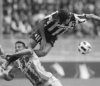 10月17日,尤文图斯队球员阿毛里(上)与莱切队球员费拉里奥拼抢o当日,在意大利足球甲级联赛第七轮比赛中,尤文图斯队主场以4:0大胜莱切队o 新华社发