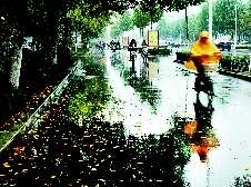 1o月18日下午,德州下班的市民在秋雨中匆匆赶路,秋雨带来的寒意让人们无暇欣赏水面映射出的斑斓秋色。本报记者马志勇摄影报道