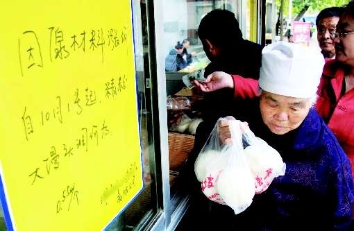 18日,在游麟路上的—家早餐车前,馒头涨价的通知单贴在显眼的位置。受面粉和食用油价格上扬的影响,该店的馒头由“十—”之前的0.5元/个涨至0.55元/个,涨幅10%。记者了解到,市区的许多馒头铺价格都普遍上调,而价格不变的馒头,市民则反映有明显“缩水”。