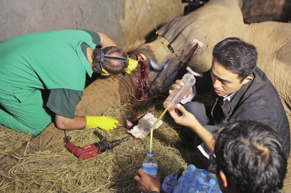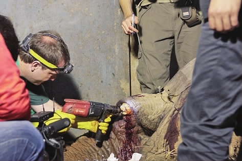 “我们带上了所有拔牙的工具和药品,原计划要做拔牙手术。可是,因为象牙的造血组织还存活,情况比想象中要好一点,加上为了皮皮以后着想,他们临时决定保留皮皮的造血细胞,不拔除牙齿,而是用特制药物等”,牙医说:“还好,我们做足了两手准备,来之前将拔牙手术与牙齿修补手术两套设备及药品都带来了”。
