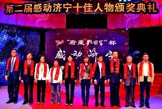 10月19日上午,济宁市隆重举行第二届“感动济宁”十佳人物颁奖典礼,十位在岗位建功、见义勇为、热心公益、孝老爱亲等方面的先进人物接受表彰。图为感动济宁十佳人物接受表彰。
