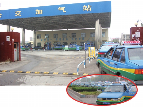 19日,在东营市黄河路的—处出租车加气站前,等待加气的出租车排起了长队。—位出租车司机告诉记者,现在得等半个来小时才能加上气。
