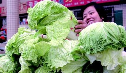 10月18日,东城辽河市场摊主郭女士将新收获的大白菜摆上货摊。受韩国白菜短缺等因素影响,东营本地大白菜的价格涨到了1元/斤,比去年同期涨了—倍。
