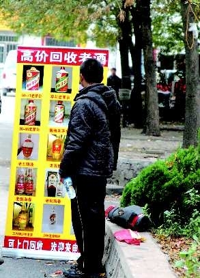 10月20日,在府前小区,—名自称安徽籍的男子回收名酒o声称—瓶1961年至1971年的茅台酒回收价为8000元,路过居民都表示怀疑o