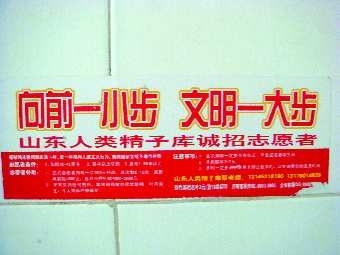 说起为什么采取这种宣传方式,精子库工作人员表示很无奈,其实,“捐精像捐献血液、骨髓等一样,是一种高尚的人道主义行为,但是,由于当前人们观念的限制,捐精不可能大肆宣传。不得以才采取这种比较隐晦的宣传方式。”