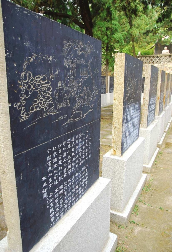 纪念馆工作人员许姗姗介绍,冯玉祥隐居泰山期间,为了纪念辛亥革命期间的滦州起义,1933年,他自己出钱、督工,修建了革命烈士祠。当他到南京就职时,还不忘拨款进行修缮,举行国葬仪式,而且还积极参加抗日宣传,写了大量激励民心的诗词。说完,许姗姗领着记者来到第二展厅,墙上挂满了冯玉祥将军诗词的图片。当看到刻有“你忘了没有,东三省被日本人占去了,有硬骨头的人应当去拼命夺回来”的石碑图片时,记者和在场的所有人都被深深震撼了。