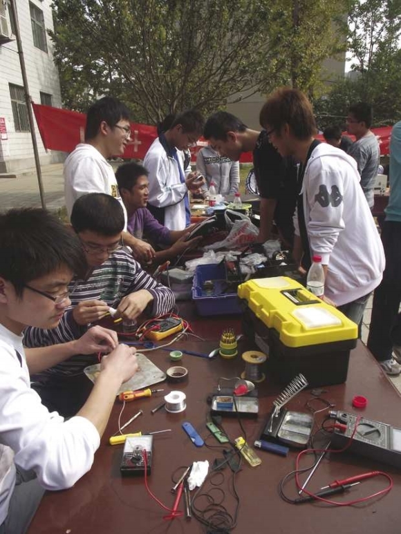 工作间隙陈杰告诉记者,他大一的时候就加入了团队。“我们这个专业要求动手能力非常强,进入团队的这两年我参与维修了几十件小家电。”陈杰说,从耳机、收音机、复读机到MP3,几乎修了个遍。