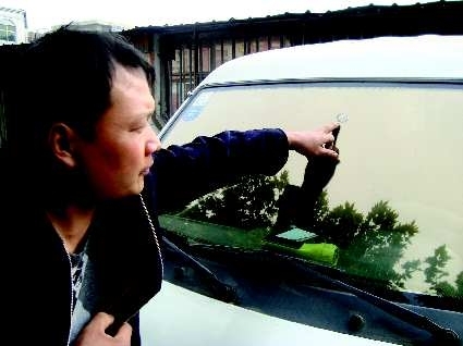 20日上午9时许,记者在市区蒙山大道兰田商业街附近见到市民韩先生。据了解,这里就是枪击现场,韩先生的车窗上仍然有一个被打破的弹孔。