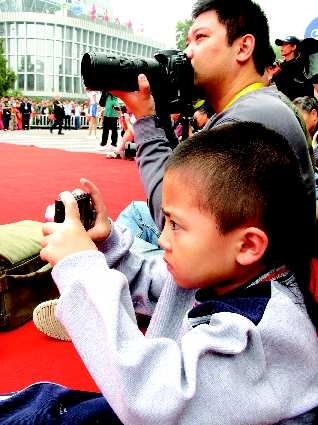 时间:2O1O年9月19日。地点:河南洛阳。自述:在一次活动中,一孩子拿着相机,坐在媒体的“长枪短炮”中间,表情十分地专注。点评:手不在大,有志不在年高。