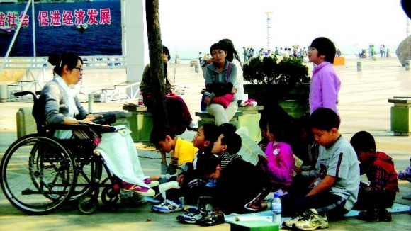 腿部残疾的女教师身残志坚,结合自己的经历为孩子们传授知识,交给孩子们课本之外的素养。何等感人的场面啊!