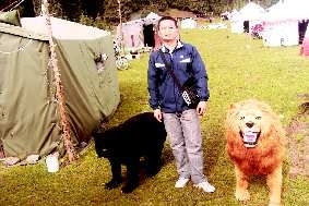 作品描述:敢和狮子黑熊亲密合影,胆子不小嘛。仔细瞅瞅,假的哦!要不怎么能笑得这么开心?