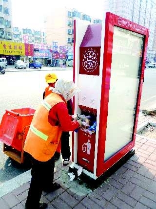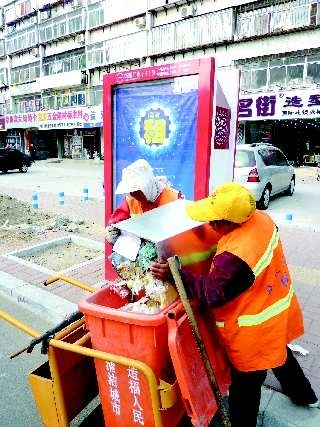 而且由于果皮箱容量有限,市民硬塞生活垃圾,不仅将果皮箱的盖子挤坏,而且清理起来也非常困难。“有时垃圾太大,将里边的盛放箱卡在投入口和清理口之间,我们搬不出来,只好探身进去往外掏。”说着,环卫工人林女士从里边拿出很大—团广告纸,“你看,除了这张纸里边就没什么垃圾了。”