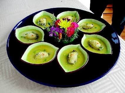 山村名菜的菜系是新派鲁菜,用地道的烟合海鲜结合东北的脆黄瓜做出不一样的味道,这是孙总经理创制的。黄瓜本身就适合为海鲜做配菜,与海螺搭配找到了一个恰当的结合点,让人味蕾大开。“一家多味”的方式,让客人在一家店就可以尝到各地地道的菜品。鲁菜、粤菜、川菜等,都是非常专业的厨师在主持料理。吴经理还特意推荐了粤菜的“啫啫系列”,称该系列菜品厨师非常棒,大家去的时候不要忘记点一道“啫啫菜”。