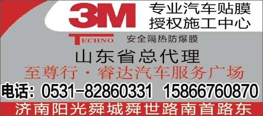 由此看出,为爱车选择贴膜是一定要谨慎,在这里为大家推荐一个正规的贴膜服务商,位于济南阳光舜城的至尊行·睿达汽车服务广场,睿达现推出特价限量活动,3M全车原价2560特价至1380(本期限前50辆),3M其他系列特价六八折,钛诺中档全车原价1920,特惠价960(本期限前50辆);其它系列均能享受贴前档,赠四门+后挡。活动咨询热线: