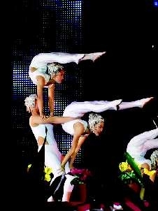 22日,济南市2010年中等职业教育风采展示暨技能大赛表彰会在济南商贸学校举行。图为济南艺术学校的学生表演杂技《软功》。本报记者李飞摄