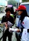 志愿者的工作很辛苦,天气很冷,活动场地是露天广场,也没有坐的地方。活动现场只有四张桌子,大部分的宣传资料没有地方放,“宝贝回家”网站的志愿者就在花坛边折叠资料。宣传册刚刚折叠完就被现场负责发放的志愿者拿走了。虽然天气阴沉,豆大的汗珠还是爬上了志愿者的额头。一位志愿者告诉记者,他一早就来了,一到现场就开始准备活动需要的桌子、音响。折叠宣传册需要人手,他又过来帮忙了。他说:“我们都希望宝贝能回家。”志愿者一直忙着折叠宣传册,累了就在地上坐一会。