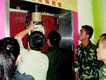 22日晚上9点33分,济宁市中区消防大队第—中队接到指挥中心指令,太白西路某量贩式KTⅴ电梯内有人被困,中队官兵立即出动赶往现场营救。到达现场后了解到,电梯内共有13人被困在—楼与二楼之间,指挥员立即命令用铁钎把电梯门撬开—条缝,及时往电梯内输送氧气。