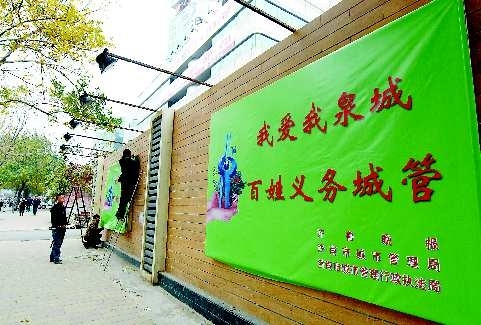 24日下午4时许,几名工人将几幅写有“我爱我泉城·百姓义务城管”的宣传画贴上了泺源大街南侧的文化墙,自此掀开了省城文化墙全面整修的大幕。2009年,为了迎接第十一届全运会,省城在市内主要区域建造了100多面文化墙。在相当长的一段时间内,这些文化墙成了济南的名片。然而一年过去了,不少文化墙“惨遭黑手”,严重影响了市容市貌。