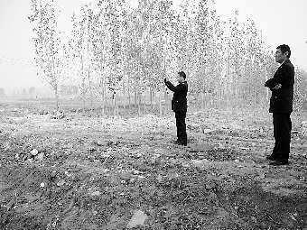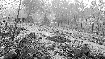 22日上午10点,记者在现场看到,海源路西侧绿化带中多出了一个宽约10米、长约30米的“缺口”,原来上百平方米的绿化带上现铺了一层泥土和建筑垃圾,地上布满大型机械作业车碾轧的痕迹,旁边的一些绿化树枝干有的也被弄断,园林处十几名工作人员正在现场查看树木的破坏情况。“完全被破坏的绿化树有一百多棵,其中杨树35棵,海棠树72棵,另外还有几棵树的枝干被损坏。”园林处工作人员介绍,破被坏的杨树胸径多数达十多厘米,长了好几年了,“这些树木,园林部门每年都花费人力物力维护,看到被破坏了,真让人气愤。”