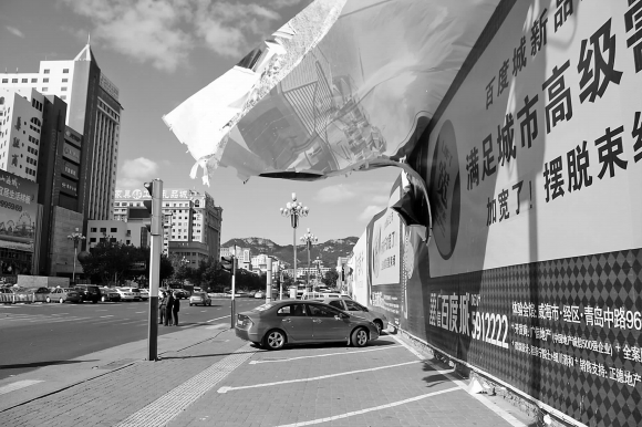 大风吹烂广告牌