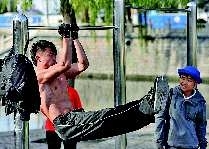 25日,路人纷纷穿上棉衣抵御寒冷。但在护城河边,—位满身肌肉的年轻人却光着膀子在坚持锻炼,青春健硕的身体让寒流天气有了—丝活力。